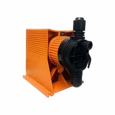It is a positive displacement diaphragm metering pump operating at 230V, 50Hz supply. It is base mountable.Solenoid pushes the diaphragm which in turn pushes the liquid into the system. Solenoid is actuated by a solid state electronic circuit. It has controls for the desire accuracy of the dosing.